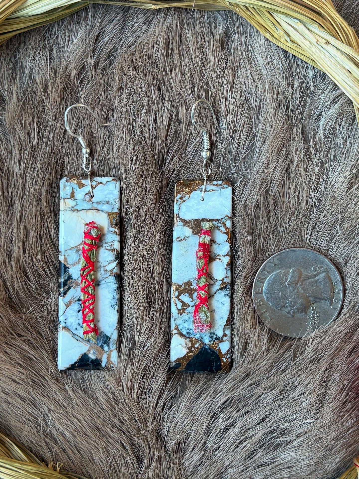 925 Sterling Silver Cabs with sweetgrass mini "smudge sticks"