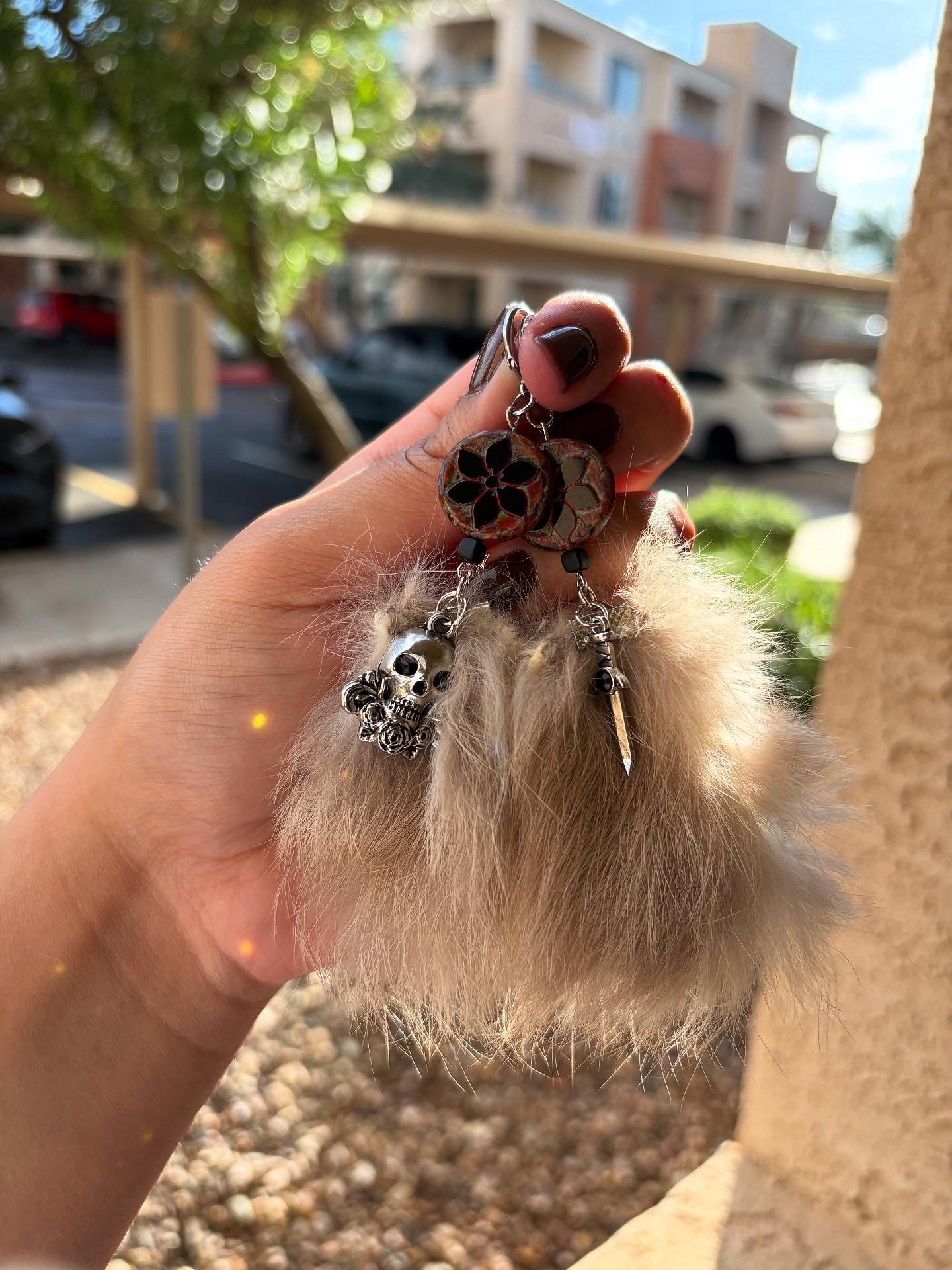 925 sterling plated hooks, ethically sourced rabbit fur, glass Czech beads and charms.