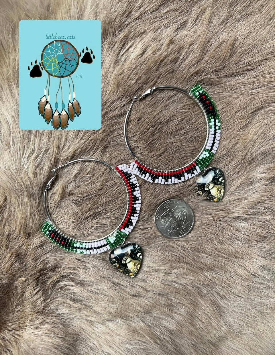 Waboose is Rabbit in Ojibwe, miyuki beading and 925 sterling Rabbit Cabs